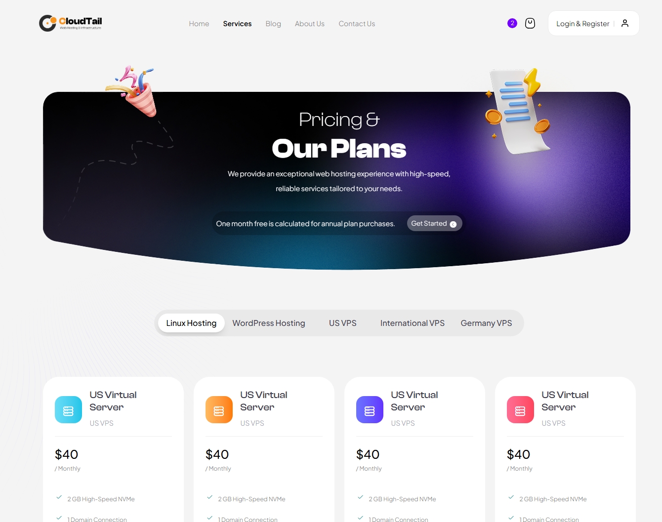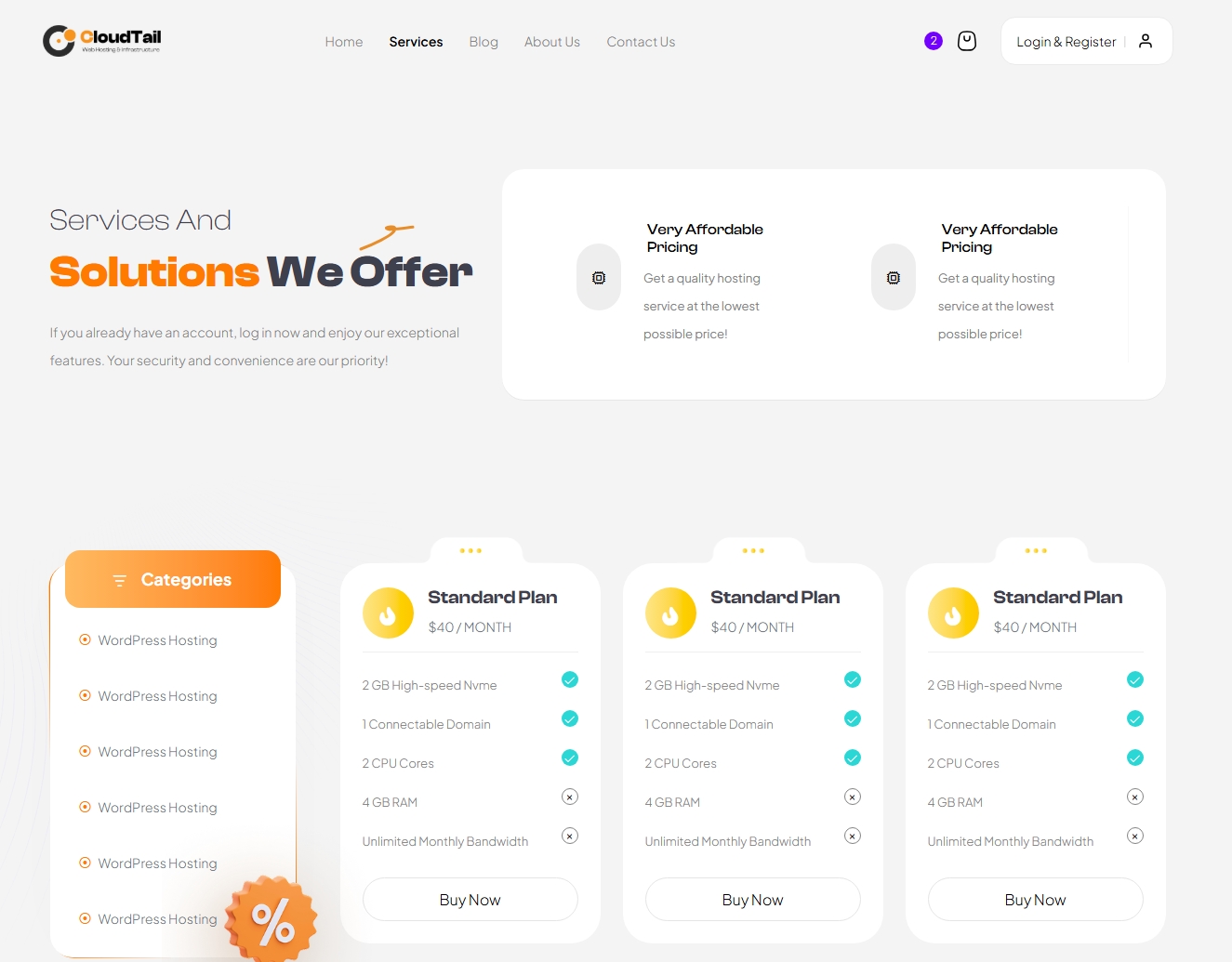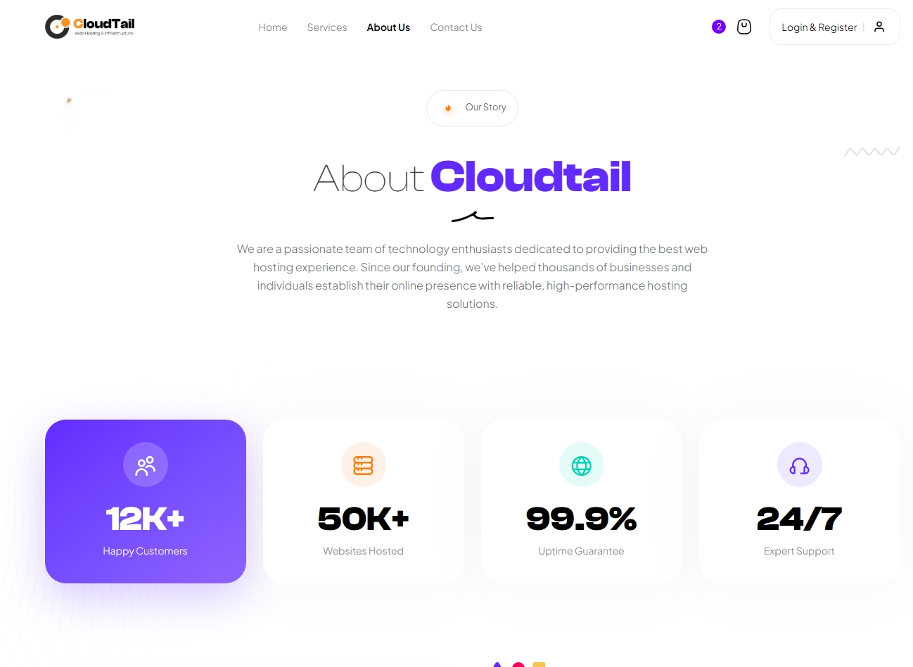 CloudTail provides a complete solution with pixel-perfect design, clean code, and all the pages you need to create a professional hosting website.