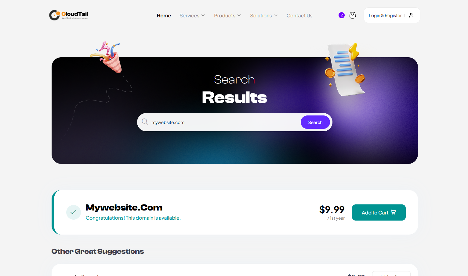 Get CloudTail today and launch your professional hosting website in no time. Join hundreds of satisfied customers.